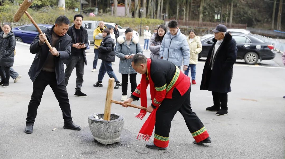 坪壩營景區,披上了喜氣洋洋的春節盛裝,喜迎八方游客。景區內設置了打糍粑體驗環節,不少游客親自參與捶打糯米,感受傳統手工藝的獨特魅力。景區還為游客們準備了祈福墻,游客們將寫下的福字貼在墻上,寄托著對新的一年美好祝愿。