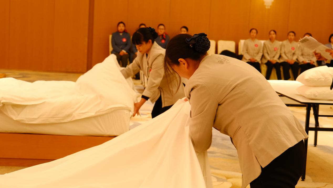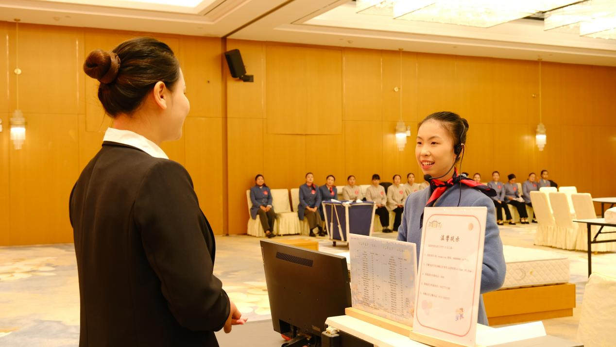 ????今年6月,問梅村正式發布《服務質量規范》,將服務流程細分為9大模塊、數百項具體標準,從客房清潔的“八步流程”到餐飲出品的“五道把關”,從停車引導到演藝活動的準時開演,每一環節皆有章可循、有標可依。本次技能大賽,正是對這一規范落地成效的實戰檢驗。
