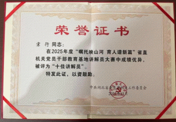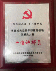 12月10日,湖北省直機關工委在石首桃花山生態園舉辦2025年省直機關黨員干部教育基地講解員大賽,石首紅軍樹革命烈士紀念園黨員干部教育基地講解員宗行代表基地參賽并獲得“十佳講解員”榮譽。