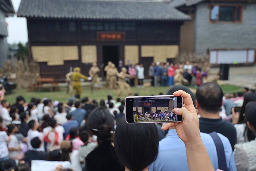 “在‘十一’國慶期間能夠到沔陽小鎮參加這樣的愛國主義節目,我深感榮幸,作為中國人我也感到非常驕傲!”參與演出的游客田克華激動地說。演出中,報名參演的游客在工作人員指導下,迅速進入角色。他們在逼真的硝煙與音效中,親身感受歷史的沉重與先輩的英勇。